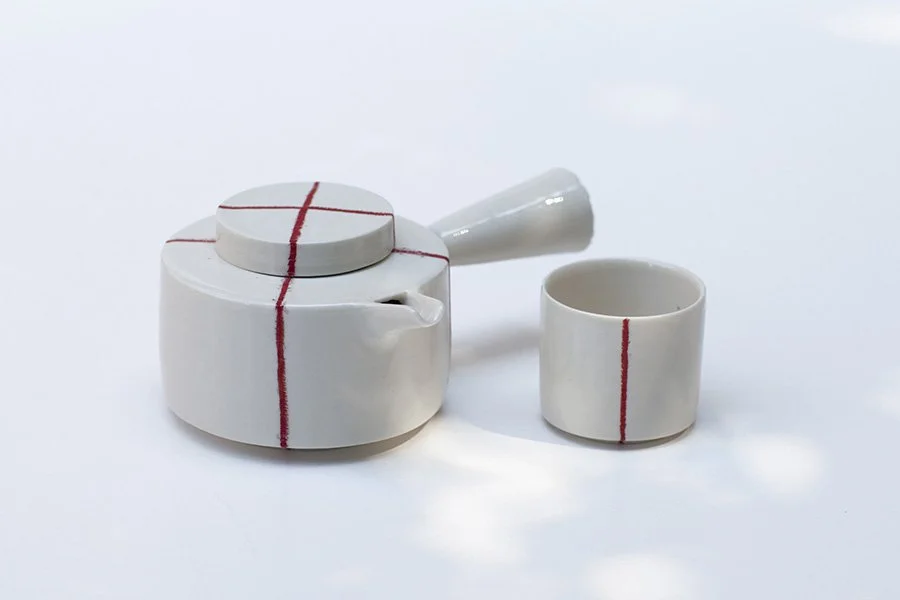 New pieces new pattern and new red lines are what you will see at my upcoming exhibition in London Contemporary ceramic centre. I am looking forward to share the progress I have made since receiving Arts Council funding in 2021. I travel through Japan and met up with crafts masters that work with clay but also with makers of candles and wax.